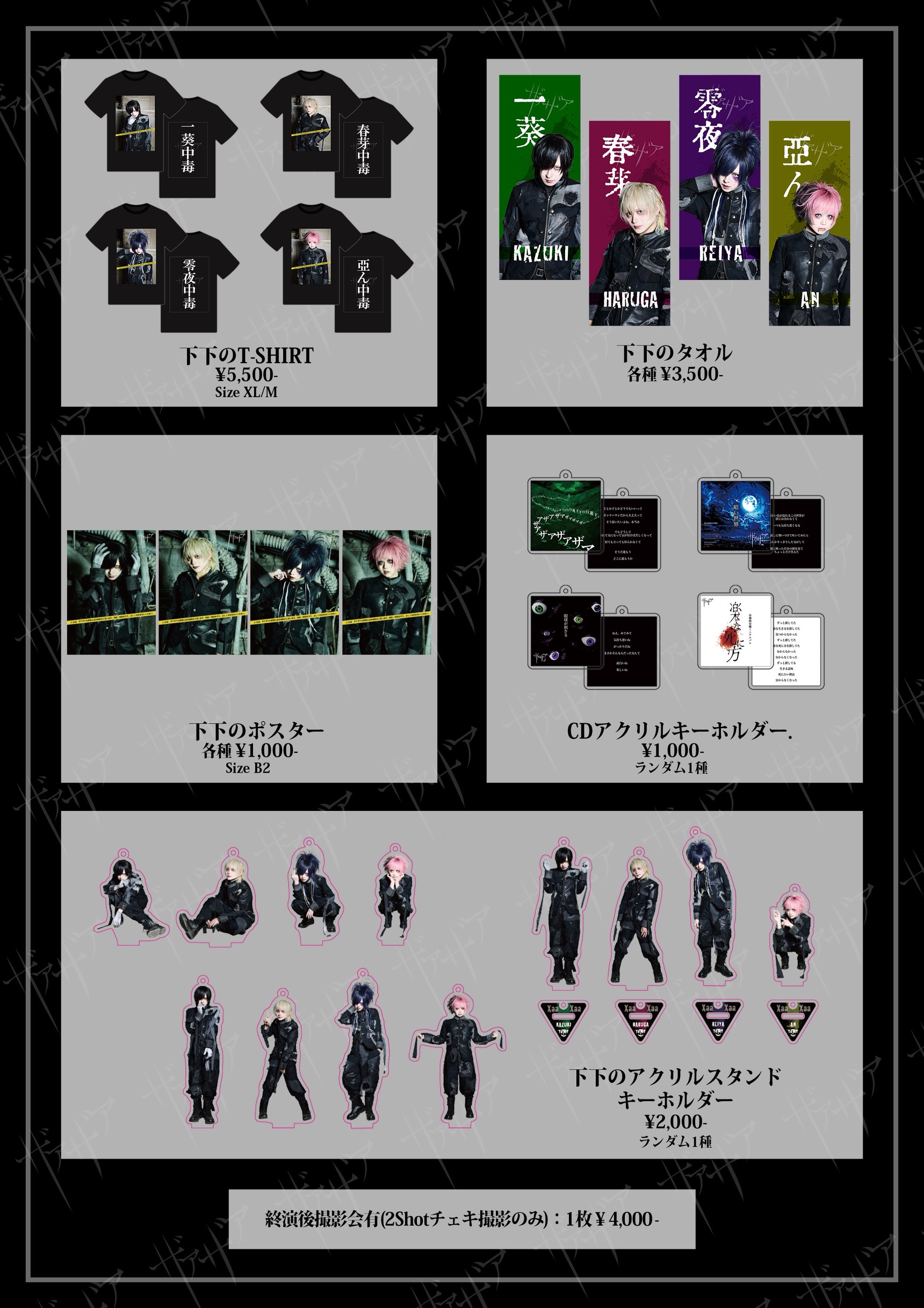 4/4(土) 福岡INSA公演より販売開始! ▶下下のT-SHIRT…¥5,500-▶下下のタオル…¥3,500-▶下下のポスター…¥1,000-▶CDアクリルキーホルダー…¥1,000-▶下下のアクリルスタンドキーホル … 続きを読む 全国単独公演ツアー【下の下の下】グッズ情報
